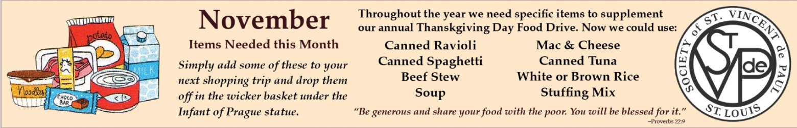 -Thanksgiving Day Mass, Food and Special Collection for St. Vincent de Paul